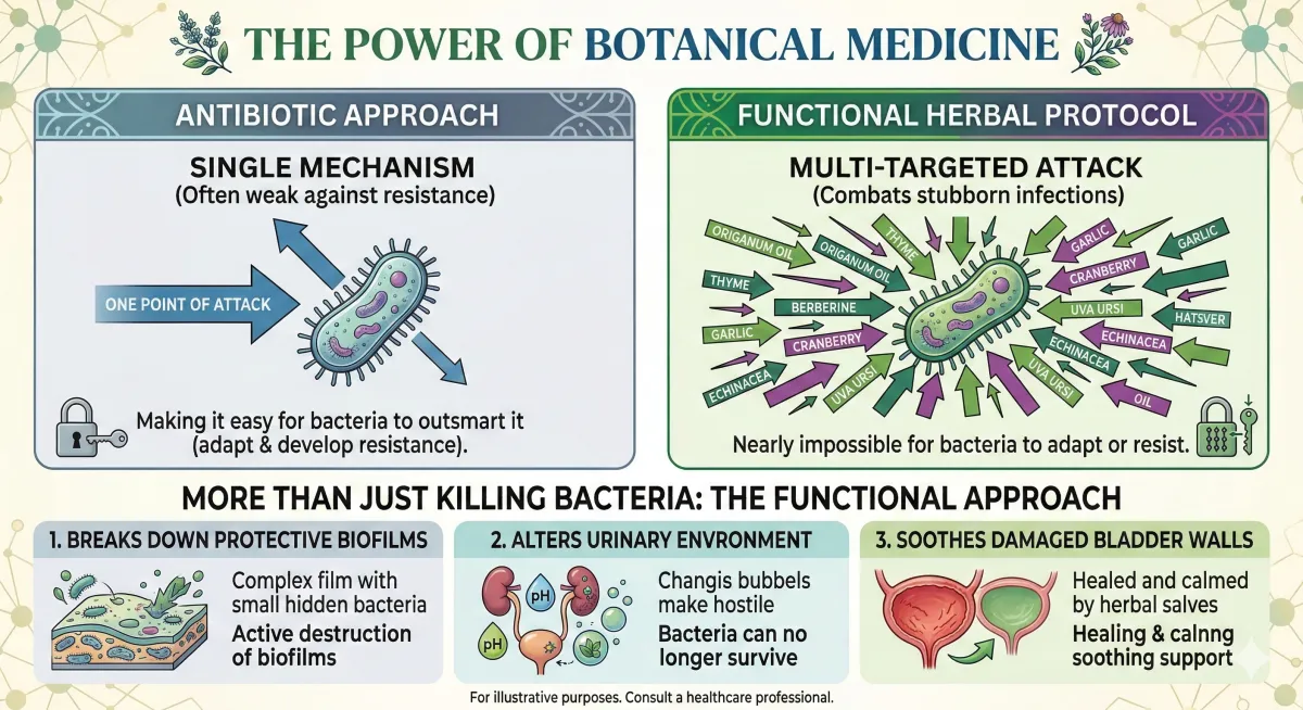 And they don't just target bacteria…herbs can also break down the biofilms and change the urinary environment so the bacteria can no longer survive.